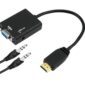Adaptador conversor HDMI macho para VGA fêmea com áudio P2